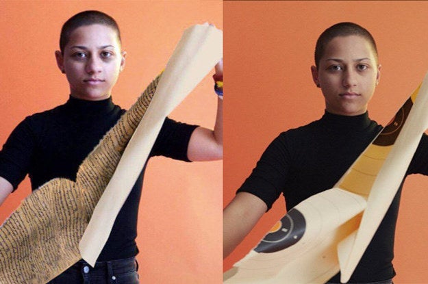 The real photo is from a Teen Vogue photo shoot, and shows Emma González ripping up a target, not the Constitution.